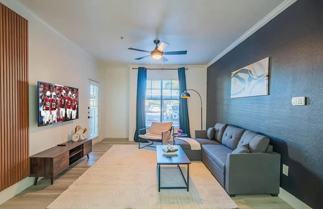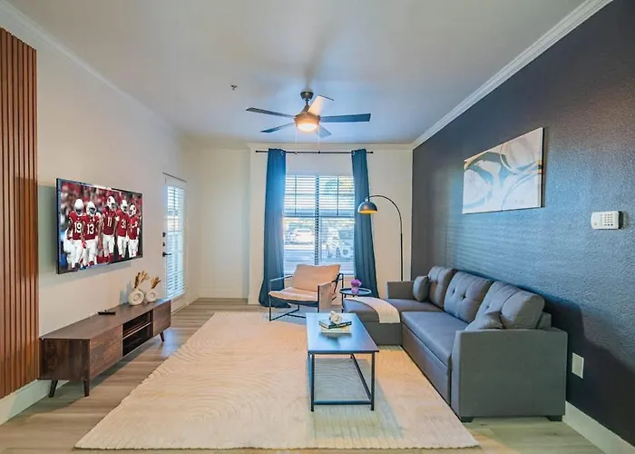 To enjoy your vacation in Glendale, stay at the 92 ft² Cozy 1Bd Kingbed With Pool Hot Tub Gym Parking Apartment Glendale, which is 1.3 miles from Phoenix Scottsdale Golf and around 25 minutes' walk from the multi-purpose State Farm Stadium. Wi-Fi is provided for both business and leisure activities.